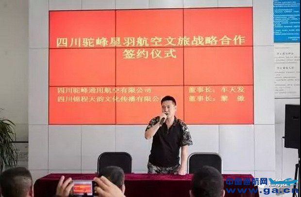 6月6日,四川驼峰通用航空有限公司与四川锦程天韵文化传播有限公司签署四川驼峰星羽航空文旅综合营地项目战略合作协议,双方将共同打造航空文旅综合营地,围绕飞行培训、航空运动、运动健身、旅游康养、拓展训练等方面展开深度合作。