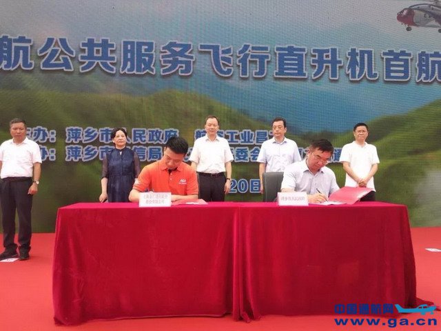 首航仪式由萍乡市政府秘书长兰叶子主持,萍乡市副市长肖双燕致辞。在萍乡市委副书记、市长李江河,副市长肖双燕等领导的共同见证下,萍乡市工信局局长汤萍方与金汇通航江西分公司总经理吴商正签订了《通航服务协议》,确保萍乡市通航公共服务飞行顺利推进。