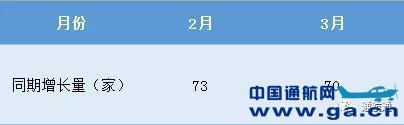 据相关数据统计,截止2019年2月28日,通用航空企业数量较去年同期增长了73家。相比1月同期增长量有所下降。