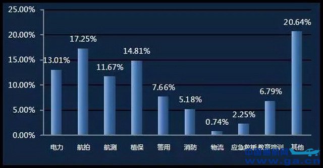 根据人力资源和社会保障部近日发布的《无人机驾驶员就业景气现状分析报告》内容来看,在这四大领域中无人机从业人数超过总数的55%,而在警用、消防、应急救援等领域中从事无人机工作的也占比较大。