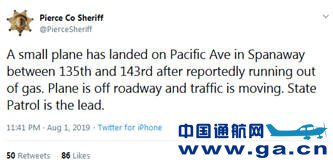 美国《西雅图时报》援引华盛顿州巡逻队(WSP)的话说,当地时间8月1日上午8时20分许,这架单螺旋桨KR2飞机的燃料系统突然出现故障,导致引擎熄火,飞行员不得不进行紧急迫降。皮尔斯县治安官办公室当天在推特称,该飞机最后降落到太平洋大道上。
