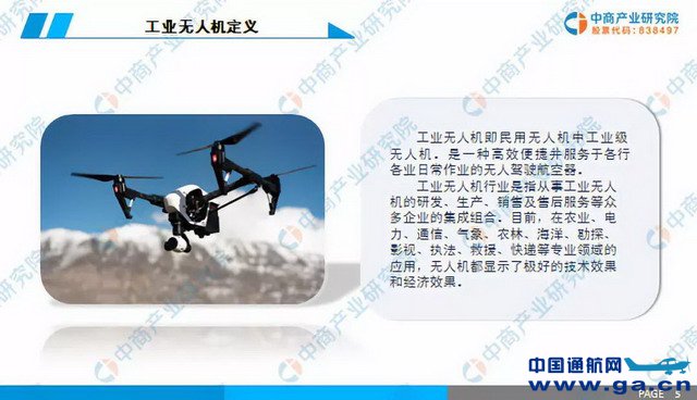 工业无人机即民用无人机中工业级无人机。是一种高效便捷并服务于各行各业日常作业的无人驾驶航空器。工业无人机行业是指从事工业无人机的研发、生产、销售及售后服务等众多企业的集成组合。目前,在农业、电力、通信、气象、农林、海洋、勘探、影视、执法、救援、快递等专业领域的应用,无人机都显示了极好的技术效果和经济效果。