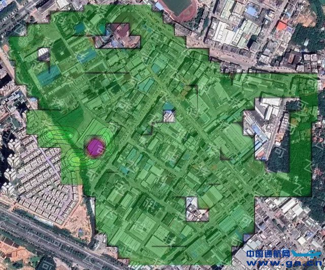 灵嗅绘制出的工业区VOCs等值线浓度图,紫色位置即为浓度异常区域
