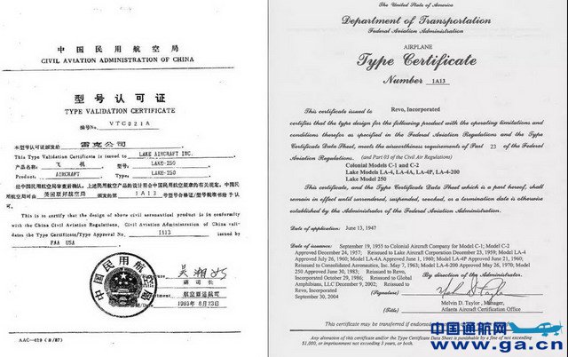 雷克飞机是当今唯一获得美国联邦航空管理局(FAA)23部型号认可证的单发,单船体的水陆两栖飞机。此型号认可证无任何附加限制条件,并在1993年获得中国民航管理局的型号认可证。