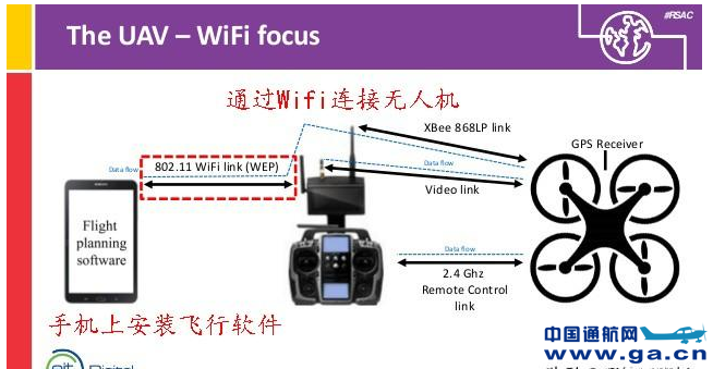 他们意识到大多数无人机使用Wifi技术与地面控制站通信。