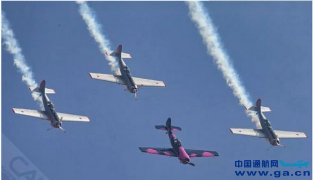 在蒲城内府机场,世界首支碳零排放的绿色环保特技飞行表演队——英国雅皮士特技飞行表演队,为现场观众献上的精彩特技飞行表演,也完美契合本次航展“绿色环保”的主旨。