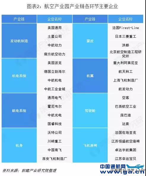 航空产业园可以全面覆盖我国航空产业全部产业链,园区内企业主要为航空产业链中游企业,包括各大航空产业研究院;航空飞行器制造企业,航空备件制造企业等,其中航空飞行器制造企业占据绝大部分。