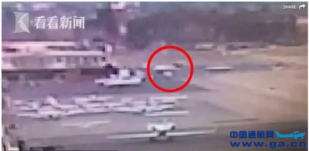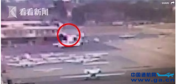 监控摄像头拍下了事情发生的过程,女孩驾驶的飞机离开航站楼后驶向起降跑道,在转弯后撞上围栏,并就此停下。