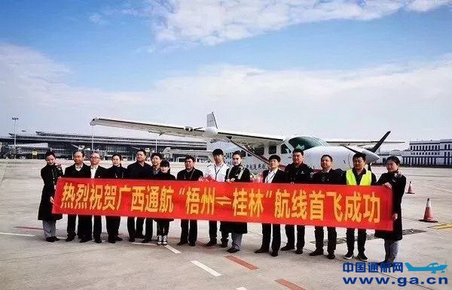 12月4日上午,广西“金桂飞”通航短途运输梧州—桂林航线首飞仪式在梧州西江机场举行,标志着广西自治区内首条通航短途运输航线正式开通。