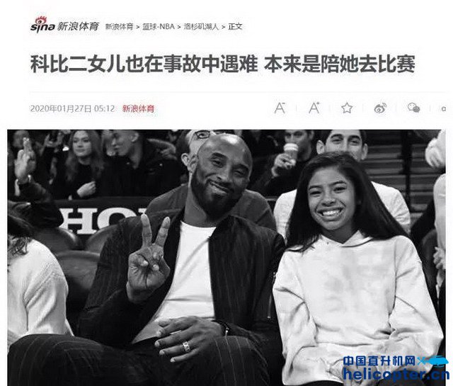 1月27日消息,当地时间26日NBA传奇巨星科比·布莱恩特在加利福尼亚州卡拉巴斯(Calabasas)的一场直升机坠机事故中身亡,时年41岁。本次事故飞机中的9人无一生还,其中还包括科比年仅13岁的二女儿吉安娜。