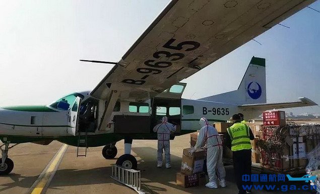 楚天通航大棕熊飞机运送呼吸机和口罩