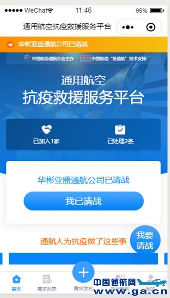 为响应民航局关于发挥好通用航空在疫情防控中作用的通知要求,中国航空运输协会通航分会、中国航信积极为通用航空企业抗疫救援搭建平台,确保全国支援湖北的空中运输大通道畅通无阻。2月19日,“通用航空抗疫救援服务平台”正式上线。