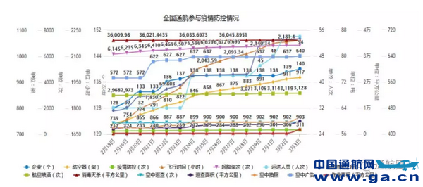![]() 根据分析,截至 3 月 3 日,全国共有 140 家通用航空企业(其中 99 家无人机企业)使用 917 架航空器(其中固定翼 36 架,直 升机 101 架,无人机 780 架)执行了 311 次疫情防控任务, 累计飞行 2190.78 小时 6818 架次;运送相关人员 54 人次;运送各类药品和物资 85.301 吨;开展航空喷洒作业 3128 次, 消毒灭杀面积 36080.9145 平方公里;执行空中巡查任务 903 次,巡查面积 4828.728 平方公里;执行空中拍照作业 453 次、空中广告作业 640 次,作业面积 1876.189 平方公里。