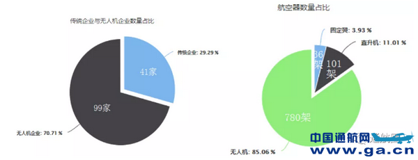 ![]() 5.无人机广泛参与。从通航企业数量看,执行疫情防控任务的 140 家企业中,无人机企业 99 家,占比达到 70.71%。从航空器数量看,917 架航空器中无人机 780 架,占比高达85.06%。
