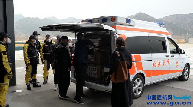 由于起飞前一日夜间下雨导致飞机结霜,第二天天刚亮,机组人员以最快速度为飞机除霜并做好各项航前准备工作,同时救援指挥中心里井然有序地发出一道道飞行计划报批申请:“可以起飞”、“可以放行”,“按航路飞行”,军民航各部门和管制单位一路绿灯,保证飞机按规定时间准时从密云机场起飞。