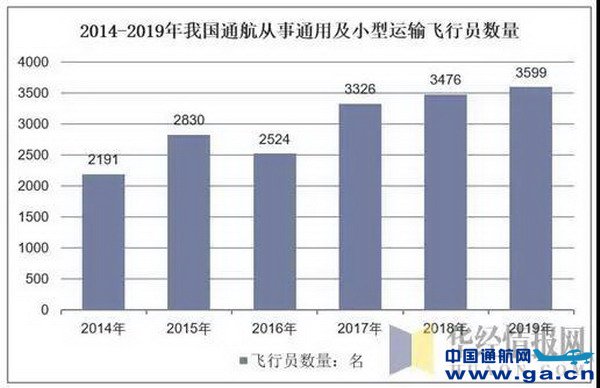 2019年底,我国通航从事通用及小型运输的飞行员3599名(含中国籍飞行员3411人,外籍飞行员58人。