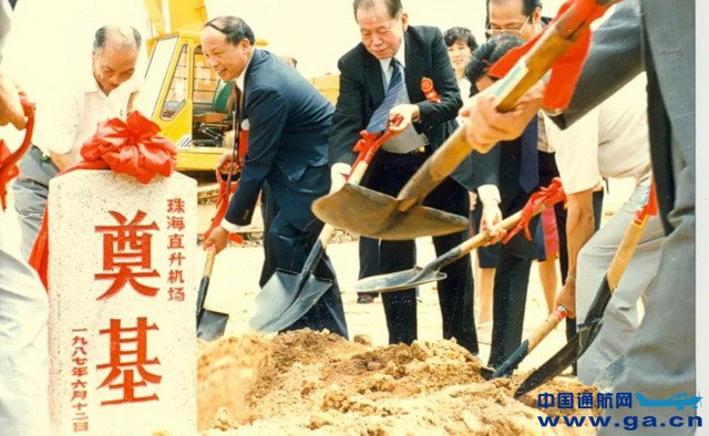 ![]() 1987年,时任珠海市市长梁广大与嘉宾为九洲机场迁建奠基(南航通航供图)