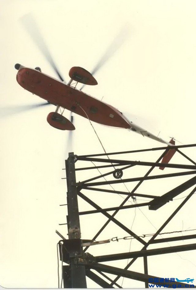 ![]() 1985年,S61直升机在珠海进行组塔、放线表演(南航通航供图)