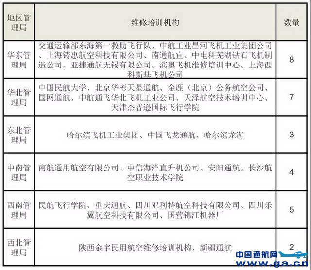 中国通航网 www.ga.cn 通航翻译 www.aviation.cn 本文链接地址:通航CCAR147机务培训机构统计 |