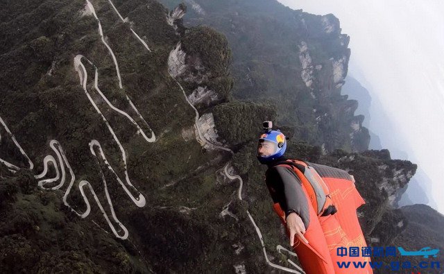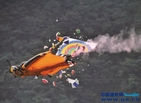 ![]() 2019天门山翼装飞行世锦赛,选手正在进行穿靶比赛。图据张家界日报