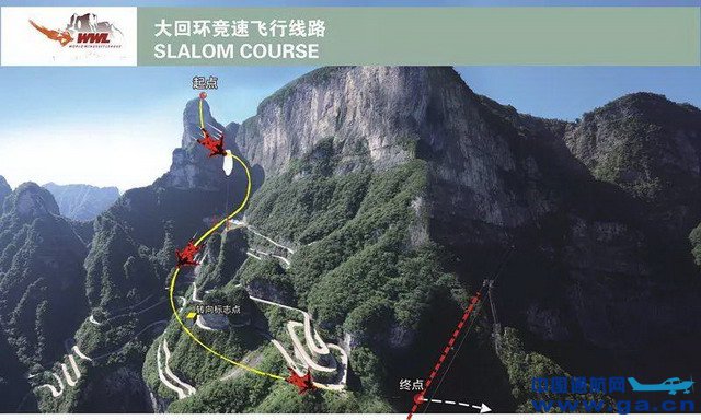 ![]() 2019天门山翼装飞行世锦赛大回环竞速飞行路线。张树鹏获得竞速赛第四名。图据网络
