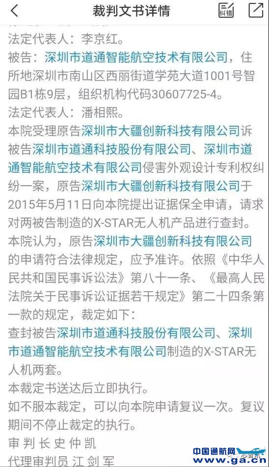 中国通航网 www.ga.cn 通航翻译 www.aviation.cn 本文链接地址:被裁定专利侵权!大疆无人机或遭美国禁售(2) |