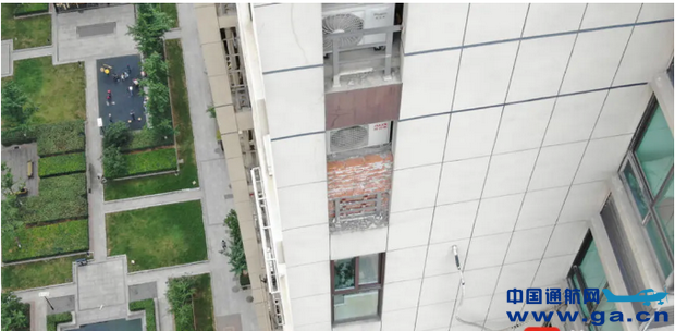 ![]() 图为无人机侦察到的高空外墙隐患。