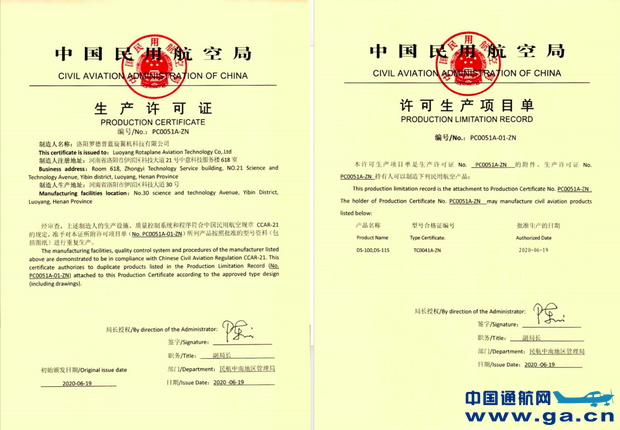 近日,民航局正式为洛阳罗德普蓝旋翼机科技有限公司颁发DS-100、DS-115两型自转旋翼机生产许可证(PC)。该公司成为国内少有的拥有设计研发制造生产自转旋翼机能力的公司之一。