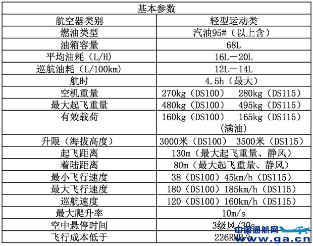 据了解,罗德普蓝DS-100、DS-115型自转旋翼机分别采用Rotax912ULS、Rotax914UL 发动机,起飞距离仅需130米、着陆距离仅需80米(最大起飞重量、静风),最大巡航速度120-160km/h, 最大航程可达500公里。该飞机应用领域广泛,使用条件便利,主要应用于空中搜救、航拍航测、安保巡逻、农林植保、旅游开发、及飞行员培训等领域。