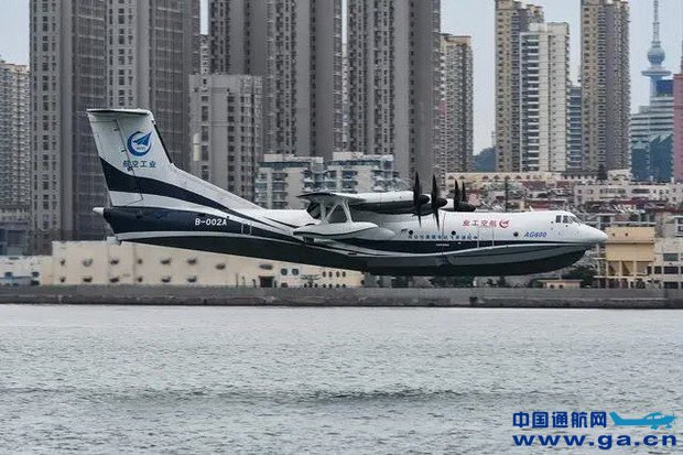 此前,AG600于2017年12月24日在广东珠海金湾机场实现陆上首飞、2018年10月20日在湖北荆门漳河机场实现水上首飞。