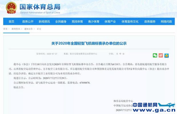 7月27-29日,国家体育总局航管中心、中国航空运动协会对2020年全国轻型飞机锦标赛承办单位进行了公示。根据公示文件,万丰航空工业有限公司被确定为2020年全国轻型飞机锦标赛承办单位。这是继2019年之后体育总局举办第二届全国轻型飞机锦标赛,也将成为我国首届由轻型飞机厂商承办的全国轻型飞机锦标赛。