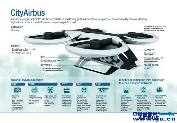 ![]() 这个项目被空客一直坚持做了下来,落地项目定义为CityAirBus“飞行出租车”,并给出了CityAirBus的推进时间表。