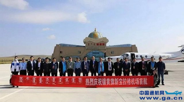![]() 9月3日9时40分,一架皮拉图斯PC-12飞机由锡林浩特飞抵镶黄旗新宝拉格机场跑道上,这标志着经过两年多的筹备建设,镶黄旗新宝拉格机场正式通航,成就了镶黄旗人民期盼已久的通航之梦。 新宝拉格机场通航初期,开通镶黄旗=锡林浩特、北京密云=镶黄旗=锡林浩特短途运输航线,开启自治区通用机场通航北京的先河。此次通航构筑起立体交通网络,将大大缩短镶黄旗与全盟及经济发达地区的时空距离,加速旅游资源开发,提升区域经济竞争力,扩大地区知名度和影响力,推动地区经济发展。 ![]() 新宝拉格机场位于内蒙古自治区锡林郭勒盟镶黄旗新宝拉格镇西部,镇中心直线距离9公里。项目于2017年5月24日获内蒙古自治区人民政府批复,总投资约1.2亿元,拥有一条1200米跑道、3个B类停机位、20个A类停机位;配套建设空管、通信、旅客安检等设施及2643平米附属设施。
