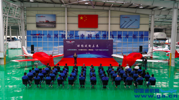 上午9时许,在山河航空各级领导、客户代表及全体员工的见证下,山河智能装备集团董事长何清华与山河科技主要领导共同揭幕,山河科技第99、100架SA60L(阿若拉)飞机正式下线并交付给客户单位——陕西信义通航和山西航安金顺通航负责人手中。此次交付的飞机为湖南山河科技股份有限公司自主研发、我国首个获得中国民航局适航认证的民族自主品牌全复合材料轻型运动飞机。