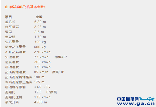![]() 山河SA60L飞机是一款由山河科技自主研发的单发双座轻型运动飞机,是我国第一款通过中国民航适航认证的民族品牌轻型运动飞机,已获美国FAA认证。山河SA60L标准系列飞机适合私人飞行、飞行员培训、旅游观光、航测遥感和航拍摄影等。目前,已成功开发出SA60L、SA60L-T、SA60L-IS三大系列飞机产品,共十个机型。