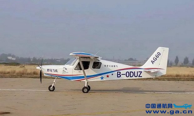 AG60野马飞机是单发上单翼轻型运动飞机,采用并排2座,全金属结构,配备MGL综合航电仪表和Rotax912ULS发动机,广泛用于飞行培训、运动娱乐以及私人俱乐部等。该型飞机最大平飞速度222公里/小时,最远航程可达1326公里,有效载荷230公斤。