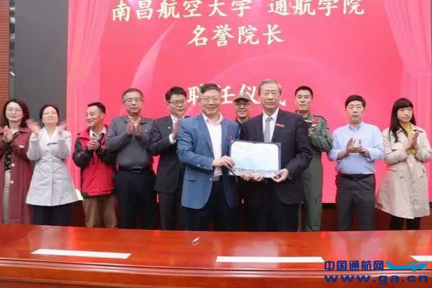 近日,南昌航空大学举办通航学院名誉院长聘任仪式,党委书记罗嗣海为中国工程院院士刘大响颁发聘任证书,并佩戴校徽。
