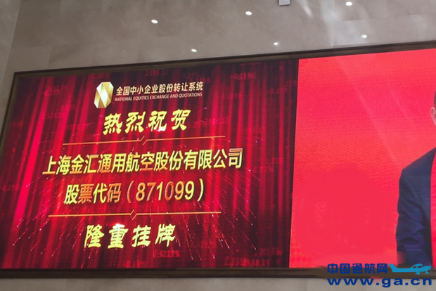 2017年4月26日,金汇通航在北京举办了新三板挂牌敲钟仪式,成为中国新三板首支以直升机医疗救援为核心业务的“航空医疗救援概念股”。金汇通航董事长邹建明在挂牌仪式上表示,新三板挂牌标志着金汇通航进入全新发展阶段,将紧抓行业高速发展机遇,进一步加快规模化发展,强化品牌影响力,打造一个全国性、标志性的通航企业。