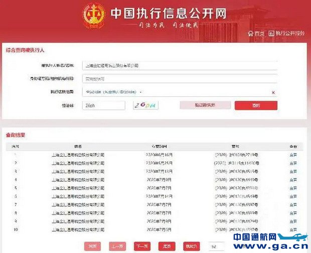 ![]() ▲今年5月起,金汇通航被多家法院列入失信被执行人名单
