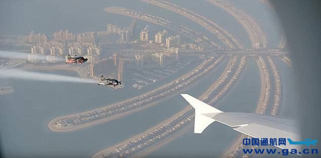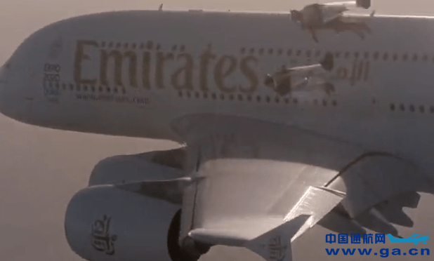 2015年,伊夫·罗西和文森特·雷菲特在迪拜上空的一架阿联酋航空A380客机旁飞行。两人在4000英尺高空达到了120英里/小时的速度。