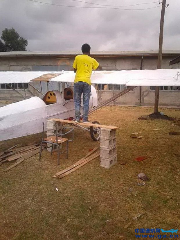 他参考了美国30年代飞行训练机的样子,大部分的材料是他跑到首都亚的斯亚贝巴最大的超市买到的。