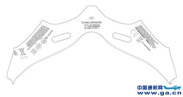 该新护目镜看起来是遵循同样设计的第一个版本具有类似FCC的标签。FPV护目镜的型号为FGDB28.并以11.1V至25.2V的电池供电。另一幅图显示了在护目镜底部的两个调节开关,两个通风孔,以及戴上它们时鼻子所经过的区域。