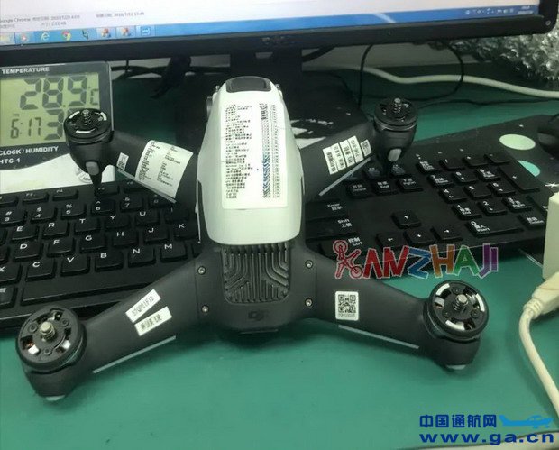 无人机看上去有一个磨砂的塑料顶篷,里面可能装有无人机的GPS和其他大脑。电池可能在无人机的后部。我们可以看到无人机前部顶部的散热器很可能用来使相机在飞行中保持凉爽。