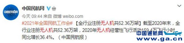 此前,民航局运输司副司长商可佳表示,“十三五”期间,无人机新业态迅猛发展,网上注册开展通航作业的无人机企业超过9700家。