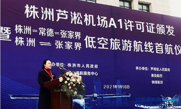 ![]() 1月16日,株洲芦淞机场A1许可证颁发暨“株洲-常德-张家界”、“株洲-张家界”低空旅游航线首航仪式在湖南株洲隆重举行。首航仪式由株洲市人民政府、湖南通航服务中心联合主办,芦淞区人民政府、英安航空、快线航空承办。