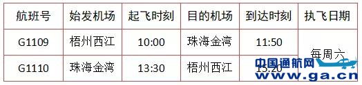 广西机场集团消息,2021年1月16日,由广西通航航空产业有限公司运营的广西首条跨省通航短途运输航线“梧州=珠海”正式通航。 ![]() 该航线由珠海中航通用航空有限公司采用塞斯纳208小型客机执飞,单次可乘坐8名乘客,全程仅需1小时50分钟。航线计划班期为每周六往返一班(具体航线航班时刻如下表),广大旅客可通过携程、同程艺龙、航旅纵横等平台进行查询、订票。