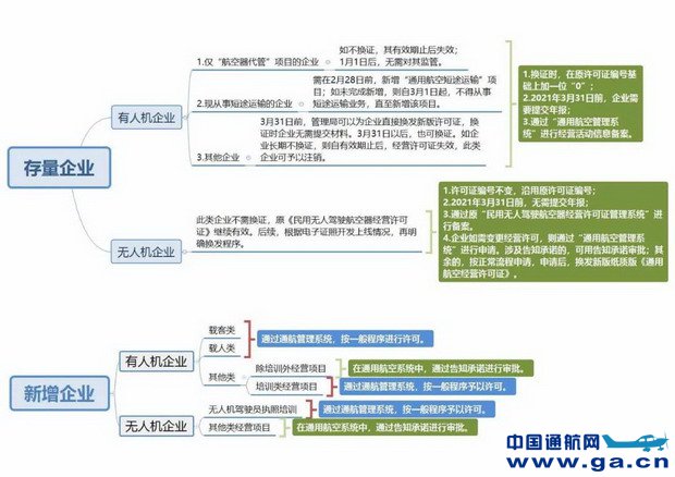 A1:自2021年 1月 1日起,对存量通航企业(含无人机企业)换发通用航空经营许可证作如下安排: