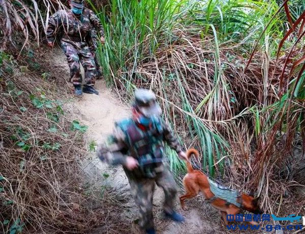 ![]() 武警官兵携带警犬深入涵洞搜查。