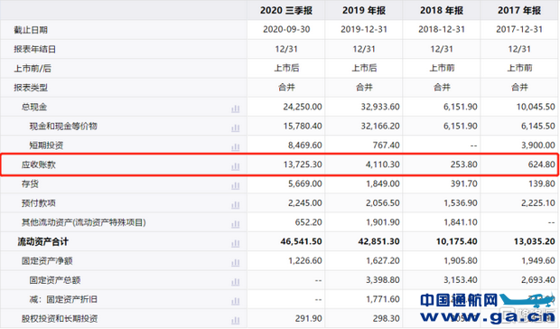 ![]() 背后最主要的原因便是公司随着收入日渐上升的应收账,截止到去年3季度,亿航应收账款增至1.37亿元,甚至高于公司总营收1.25亿元,2019年年末这一数字还是4110万的规模。