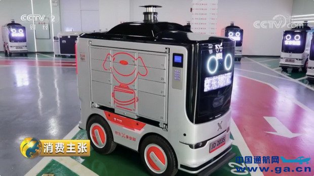 京东智能配送站内,建有机器人装载区、卸载区、充电区、展示中心及智能监控中心,采用具备自主导航行驶、智能避障避堵、红绿灯识别、人脸识别取货的京东3.5代配送机器人。